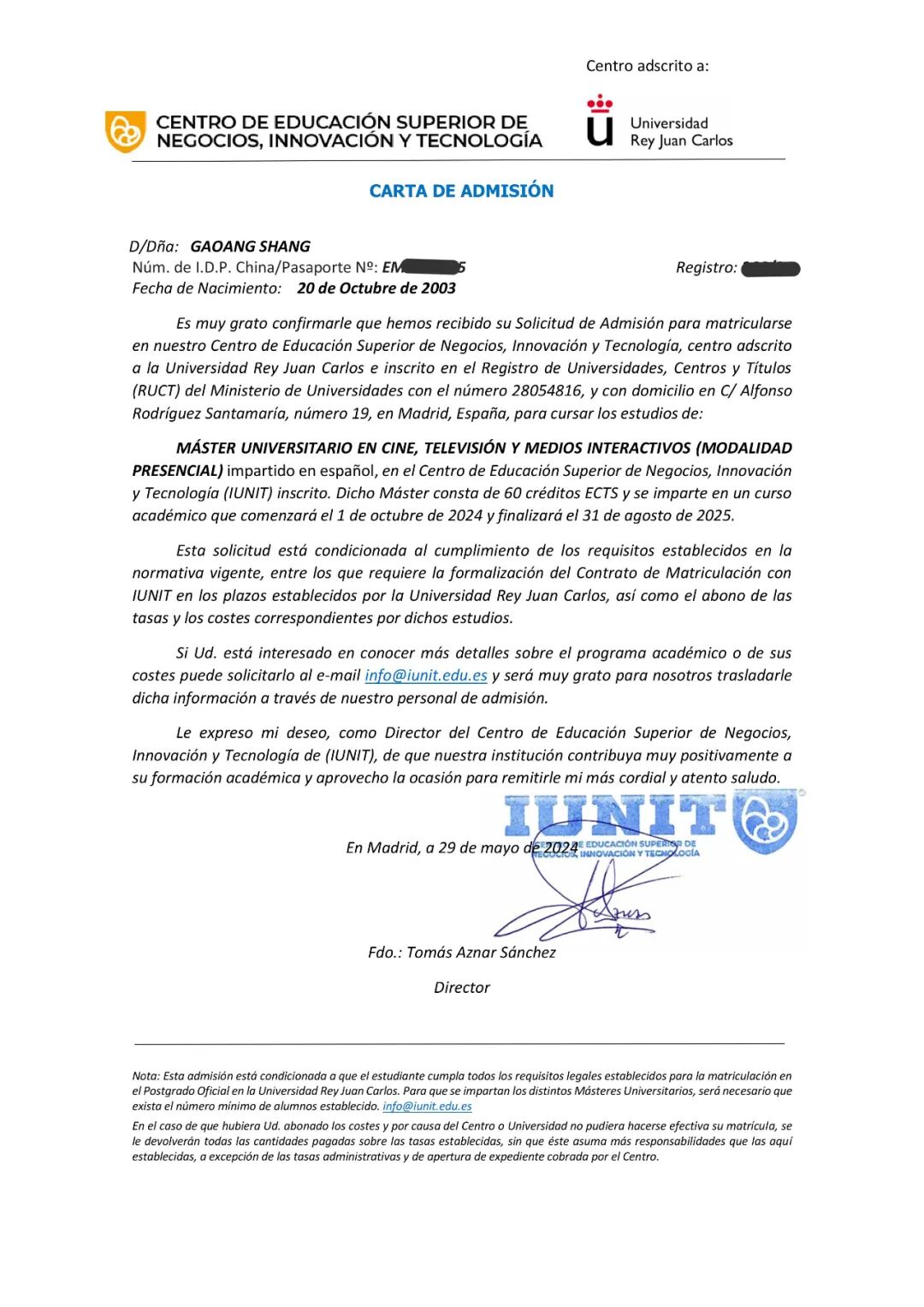 2021级广播影视节目制作专业校友,是从北京网络职业学院走出的优秀学子。他以母校的实战化专业学习为根基,成功从专科直通西班牙胡安卡洛斯国王大学攻读硕士,在影视与新媒体领域深耕实践、斩获亮眼实绩,实现了从专业执行者到兼具国际视野的复合型创作者的蜕变,成为北网学子凭借专业能力逐梦海外的典型代表。