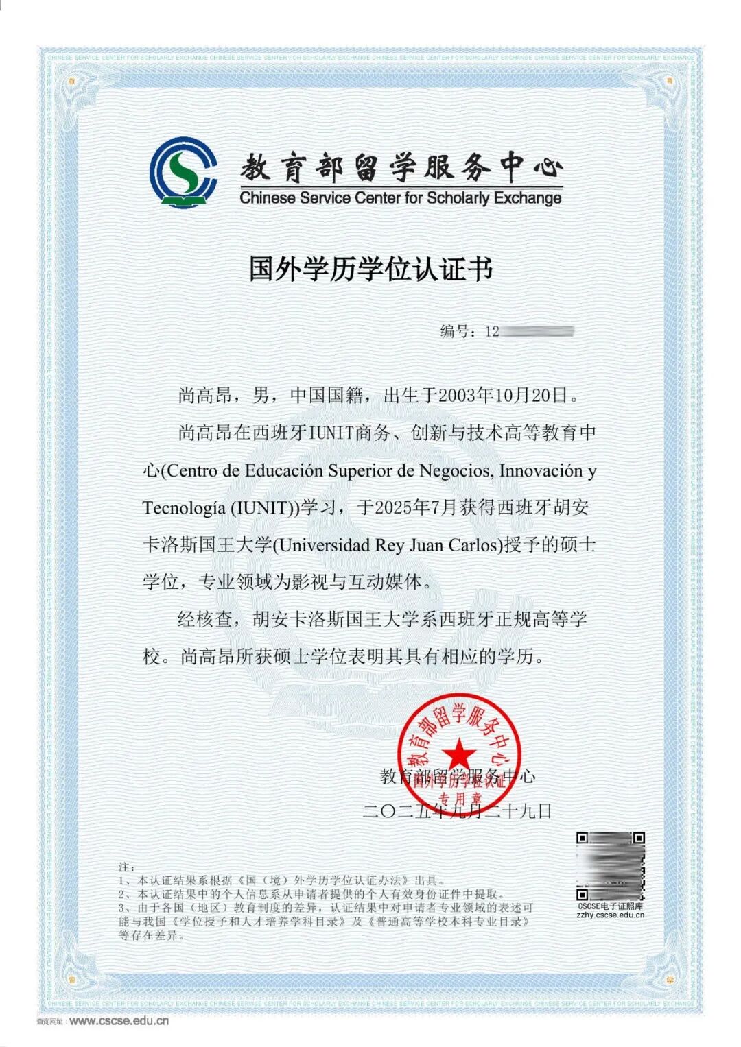 尚高昂在北京网络职业学院的专业学习,为其留学西班牙胡安卡洛斯国王大学的专业课备考打下了坚实的基础。母校实战化的课程设置,让他在校期间便掌握了从创意到成品的完整创作能力,多门核心课程更是成为留学深造的关键铺垫。