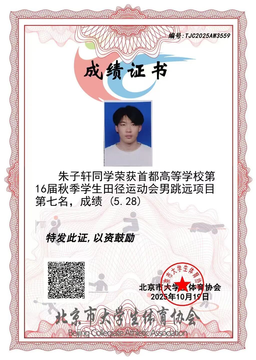 此次赛事是首都高校田径运动水平的一次集中展示,也是校际体育文化交流的重要平台。我院学子取得的优异成绩,既是他们日常刻苦训练的成果,更是学院深耕体育教育、践行“五育并举、五育融合”理念的生动体现。未来,我院将继续重视体育教育工作,不断提升学生体育素养,鼓励更多学子走出课堂、走向赛场,在运动中锤炼意志、收获成长,让体育精神成为校园文化的重要组成部分。