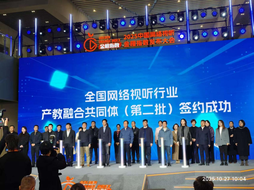 10月27日上午,由中国网络视听协会和北京市房山区人民政府共同主办的2025中国网络视听金橙指数发布大会在北京市房山区中国网络视听产业园隆重举行。“全国网络视听行业产教融合共同体”第二批成员签约仪式同步开展,北京网络职业学院成功签约成为该共同体新成员单位,且是房山区唯一参与的院校,此举标志着北网深度融入区域网络视听产业发展,政产学研协同育人迈入新阶段。