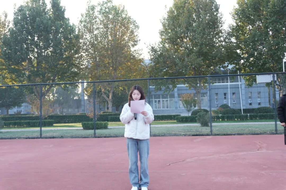 学生代表陈好代表广大学子发言,同时向全体同学发出号召。我院即将迎来学院一年一度的征兵动员大会,积极鼓舞同学们把个人理想融入强国强军的伟大事业中。她提到我院国旗护卫队载誉归来,他们在赛场上步伐一致,铿锵有力,赢得了评委与观众的热烈掌声,斩获优异成绩!这份荣誉源于队员们长期的刻苦训练与对国旗的热爱,向他们致敬!