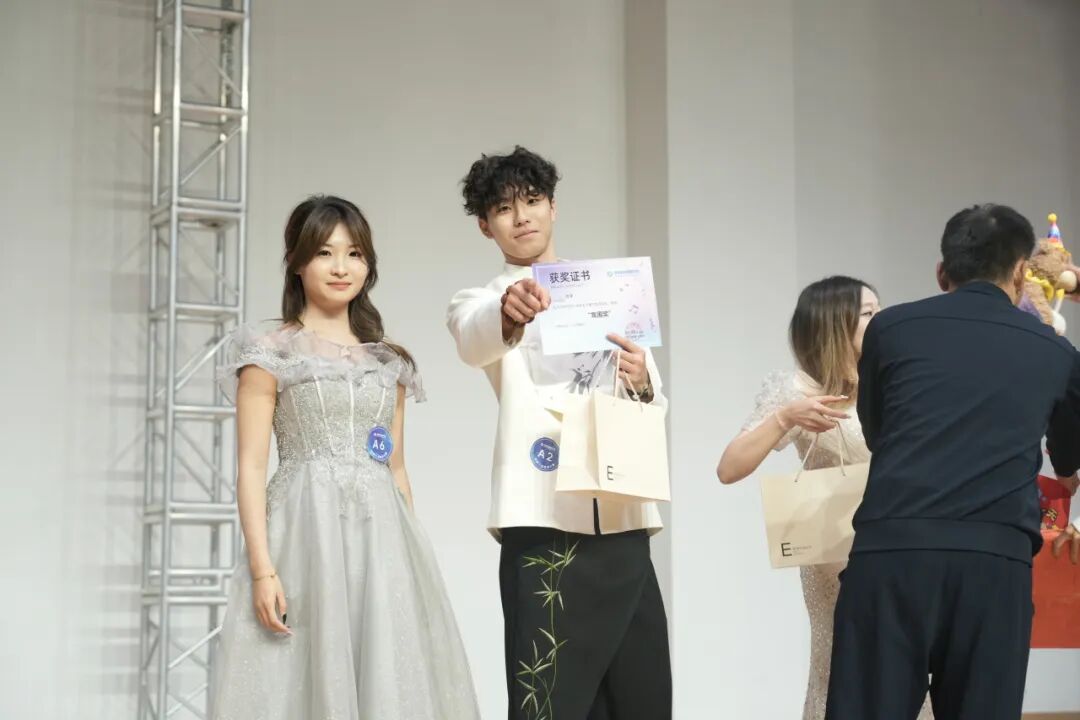 十五位选手演唱完毕,上半场比赛落下帷幕,备受期待的抽奖环节如期而至!学院刘雪竹副院长亲自登台抽取幸运观众,丰厚奖品搭配领导的亲切互动,让现场气氛彻底推向高潮,欢呼声不绝于耳。